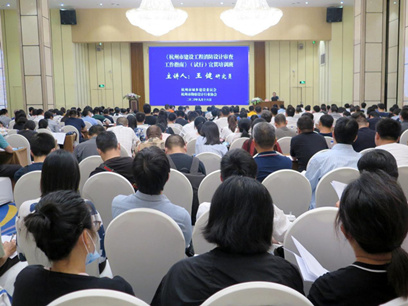 根據杭州市城鄉建設委員會要求,在杭州維景國際大酒店二樓丹桂宮舉辦了《杭州市建設工程消防設計審查工作指南》(試行)宣貫培訓班。我公司周俊、沈鈞等建筑師參加此次宣貫培訓。