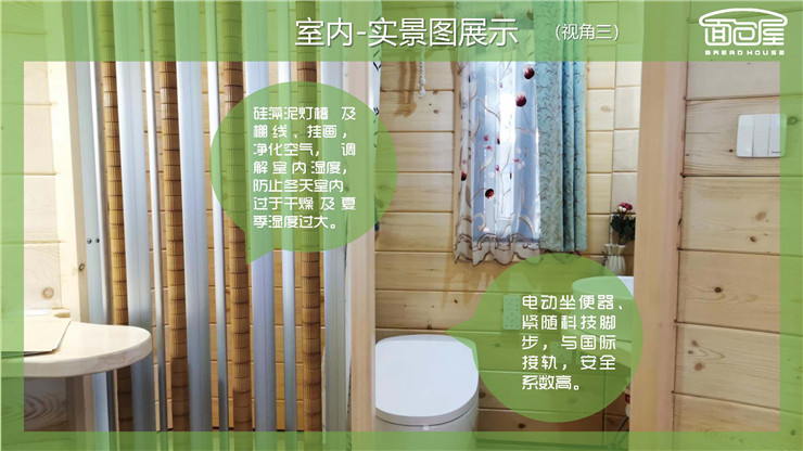 105㎜厚俄羅斯樟子松。處理后價格2300元/m3,板與板間企口接,熱工系數相當于490厚磚墻,內外刷水性漆。
