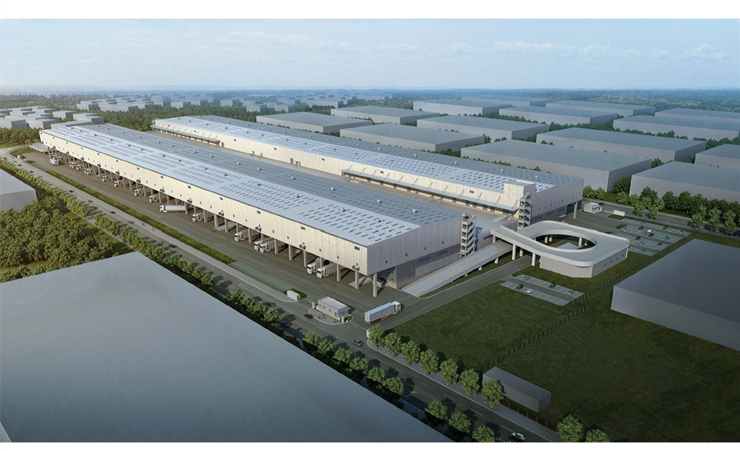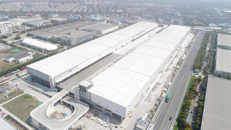 新發展75-76#倉庫新建項目位于上海市外高橋,用地面積123,804m2,總建筑面積135,886.24m2,綠化面積18,571.00m2,綠化率15%。
