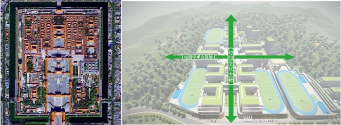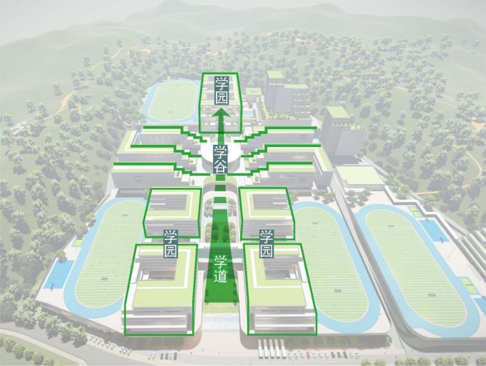 設計將中國禮序“中軸對稱”融于建筑中,“學道”、“學谷”、“學園”構成了禮序空間。