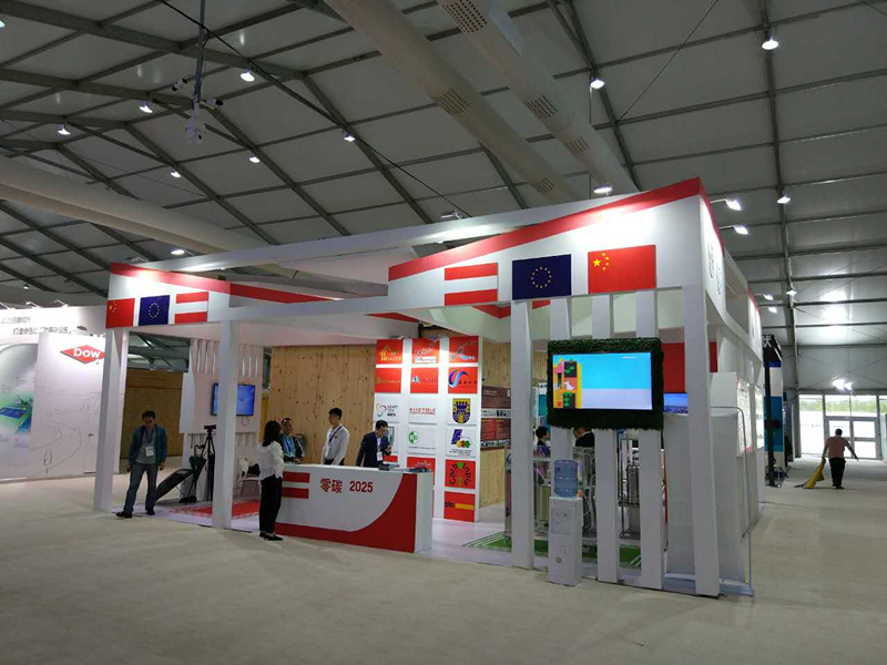 本次大會場館坐落在美麗的西津渡,共2.1萬平方米,國內外265家企業參加了本次展出。建學合作伙伴歐中環境協會及中安和平控股有限公司主辦了奧地利館的展出,館內集成了堪森裝配式被動式木屋、駿馳污水處理、森德新風、MUT垃圾處理、古興生物質汽化、瑞好門窗、河北新華幕墻廠門窗等多項國內外先進技術。三天的展出奧地利館成為了參觀人數最多的展館,來賓對奧地利館提供的低碳技術產生了濃厚的興趣。