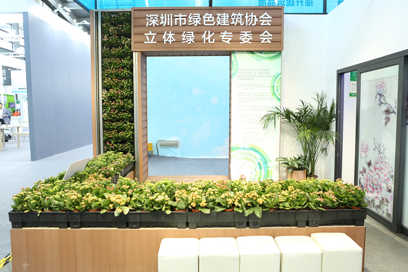 “綠色之家”為獨具特色的集成板塊,是參展企業的聯合推廣平臺,是綠色建筑展的核心區域。它以綠色樣板屋的方式進行綠色建筑科普,更直觀、形象地向民眾展示建筑節能與綠色建筑的新技術、新產品。建學深圳分公司作為立體綠化專委會副委員單位有幸參與“綠色之家”中立體景觀花園的設計,通過立體景觀花園的展示提升人們對立體綠化的認知,了解立體綠化與幸福生活的密切關系,樹立綠色生活價值觀。現場受到了行業各界和廣大市民的熱捧,成為合影留念的最佳取景點。 “綠色之家”立體后花園