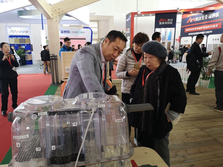 ![]() 第十八屆中國(guó)國(guó)際住宅產(chǎn)業(yè)暨建筑工業(yè)化產(chǎn)品與設(shè)備博覽會(huì) ![]() 馮康曾董事長(zhǎng)聽(tīng)取“夢(mèng)客家”秦邦國(guó)總經(jīng)理介紹面包屋內(nèi)過(guò)濾器