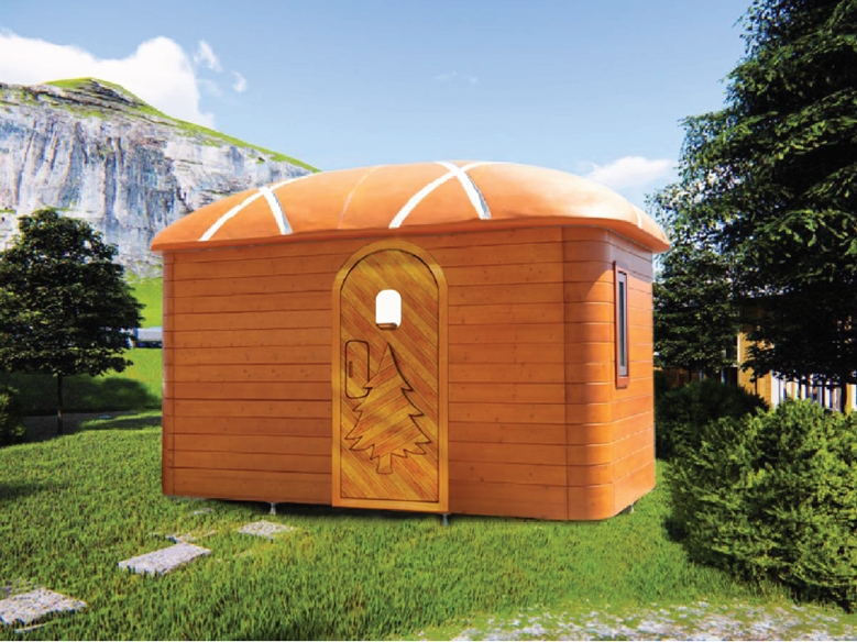 面包屋是一種純實(shí)木構(gòu)建組成的微型裝配式建筑單元,長(zhǎng)方體,四個(gè)角為弧形,屋面為專利材料拱形,面積10平方米,外觀看起來(lái)像一個(gè)剛出爐的面包,故名為面包屋。