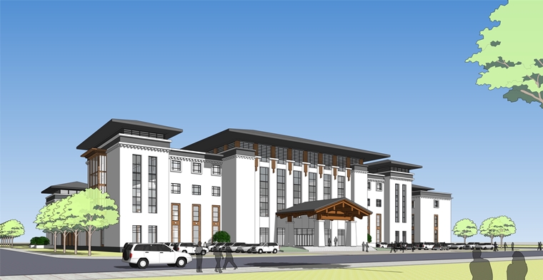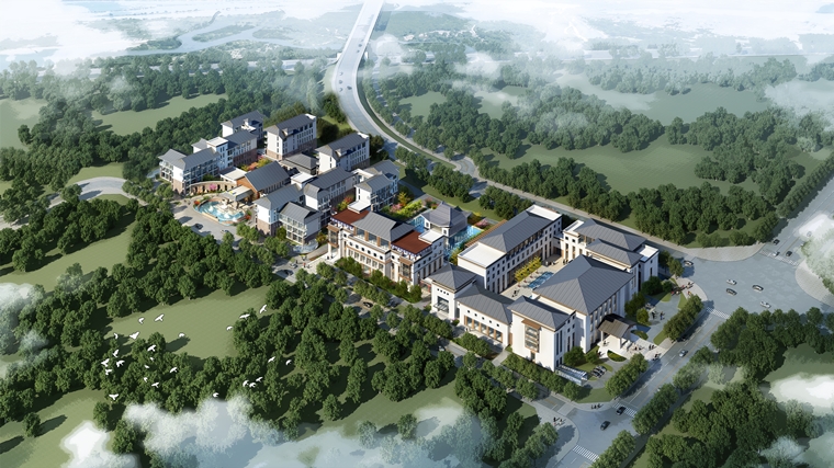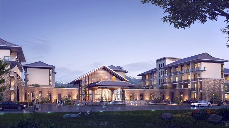 該項目分酒店、餐廳、康體、會議中心以及配套附屬樓。建筑層數(shù):酒店地上3~5層,地下1層;餐廳地上3層,局部4層;康體、中心地上4層,地下1層;附屬樓地上3層。