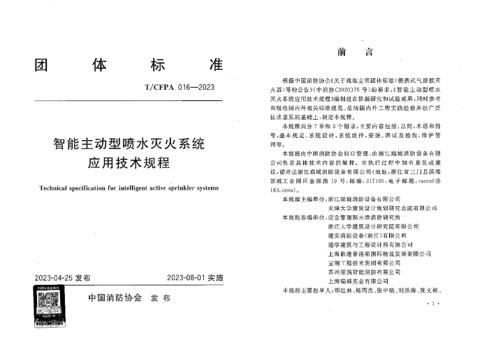 規范的應用將作為國家標準《自動噴水滅火系統設計規范》必要的配套和補充,推進智能主動型噴水滅火系統在工業和民用建筑中的應用。