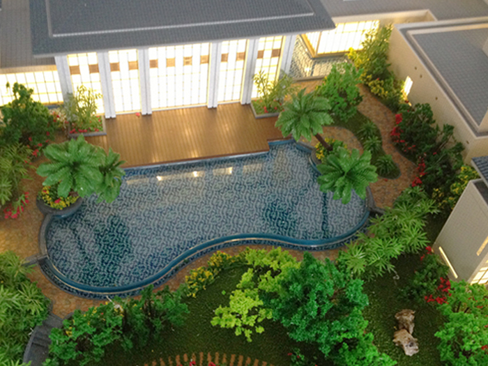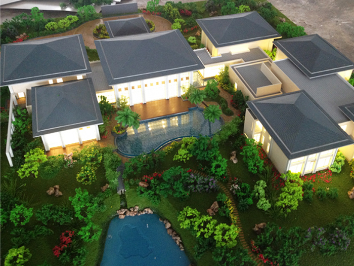結合島上的地形情況,將建筑伸展開來。形成廣場、公共部、過渡部分、私密部分,分工明確,互不干擾又便于使用。重要的高級套房和豪華套房設置在二樓,既保證安全性,又便于管理。