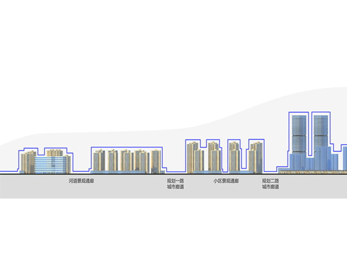 沿濱河公園周邊和河道通廊周邊進行高度控制,保證湖面的開闊,公共利益與商業利益" 共贏"。