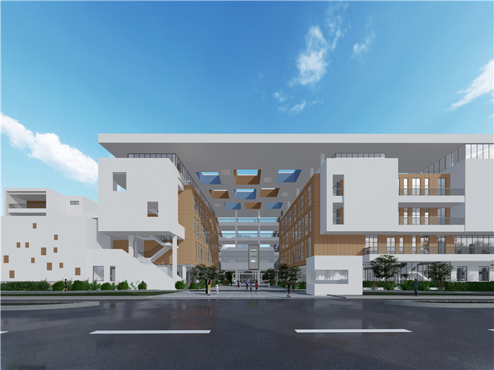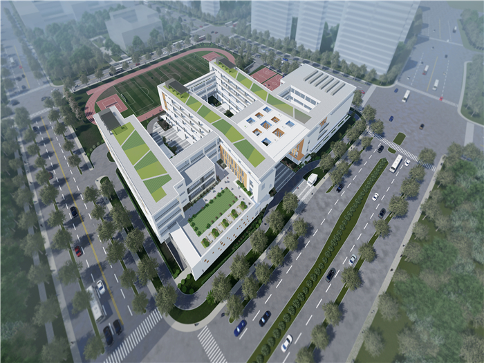 本項目位于南京河西南部天寶街西側,基地周邊為城市住宅及商業(yè)配套,四面環(huán)路。項目為24班初中,規(guī)劃總用地面積29023平方米,總建筑面積31989平方米,其中地上總建筑面積24687平方米。整體規(guī)劃希望結合面向未來的辦學理念,在滿足公辦學校的各項指標要求的同時,嘗試創(chuàng)造出大量的非正式學習空間,營造場所感,為學生和教師提供一個綠色的學習空間。