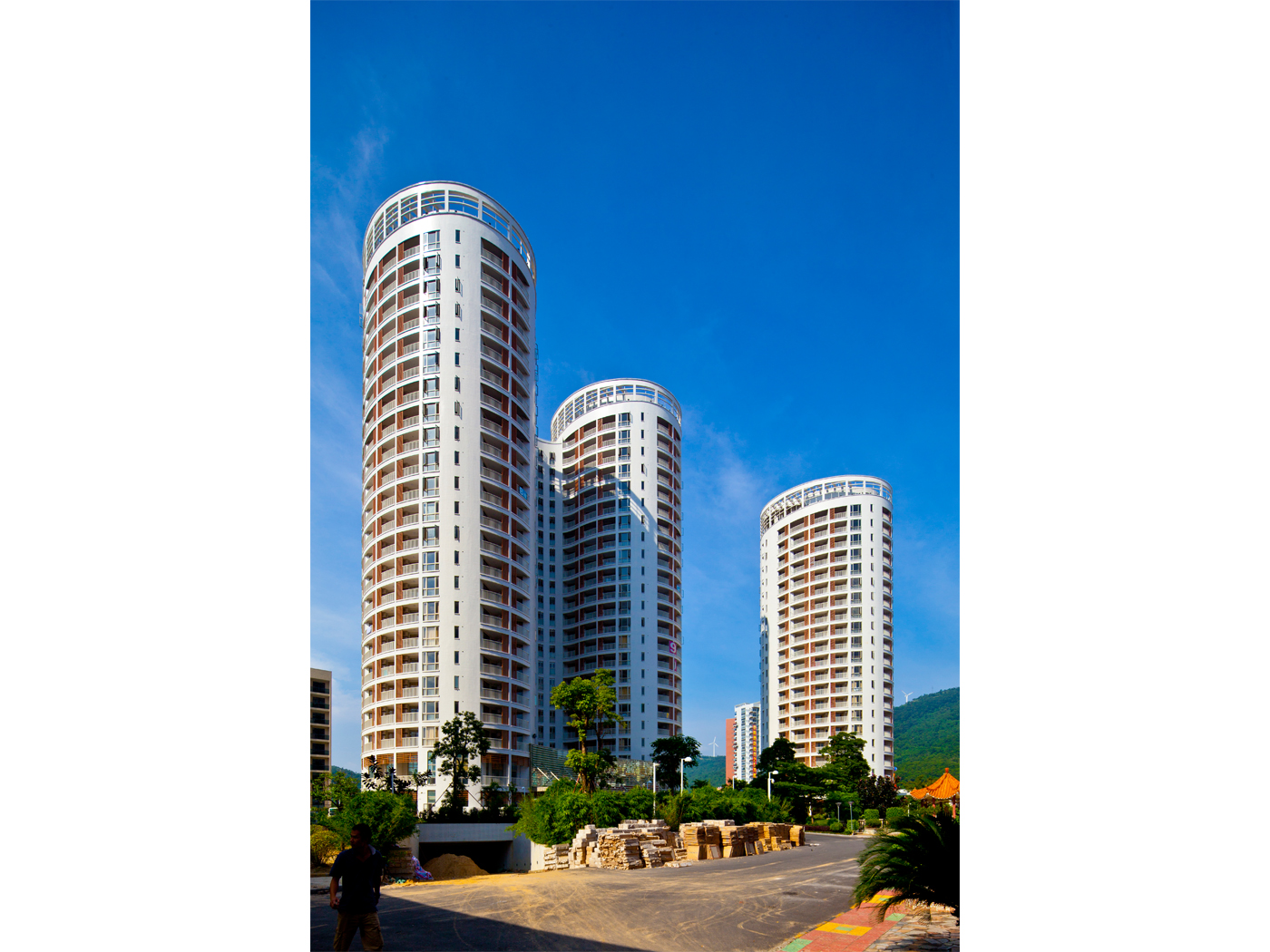 環境設計:本社區環境以觀海生活為設計主題,景觀規劃上強調觀海,同時營造內部優美景觀,將閑適氛圍融入日常起居這一規劃特征。在植物種植上結合廣東地區的氣候特征,選用耐風、耐瘠薄的植物,同時注意“色、香、果、姿”的搭配。小區內園路均采用天然材料、滲水磚等便于排水。