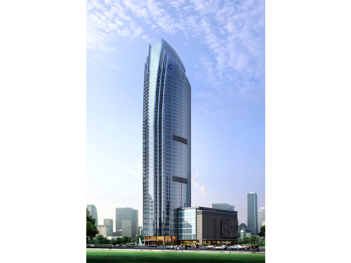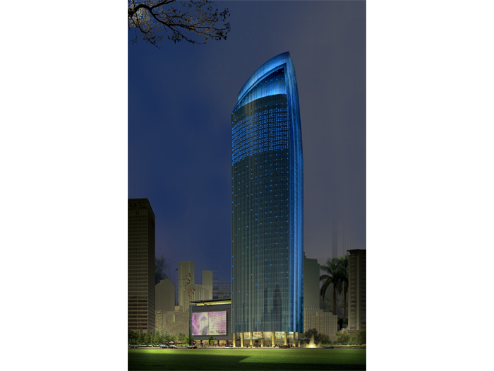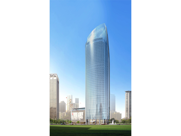 從城市尺度來看,挺拔高聳的建筑形體和變化的頸部輪廓線,極大豐富了城市天際線;從街道尺度來看,扎實穩重的建筑底部設計,簡潔干凈的玻璃和石材幕墻,豐富細膩的立面細節設計,于大處見其實,于細節見匠心,給往來人流以優雅豐富的視覺享受。主體建筑在180米以上,以絕對優勢強化了挺拔與雋永之感。并將建筑主體與裙房結合,使帆船形象更加完整。