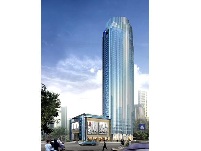 本項目北臨青島市香港中路,南靠海豐路,東側與貴都地塊、西側與黃金廣場公用巷道連接香港中路和海豐路。地下五層平時為機械式停車庫,戰時為人員掩體,防護等級為五級。地下四層到地下二層主要為車庫,地下一層為設備機房、美食街及超市。裙房一層至五層為商場,六層為餐廳。主樓七層至至十四層,十六層至二十三層為辦公,二十四層為公寓會所,二十六層至四十二層為公寓,十五層及二十五層為避難層。