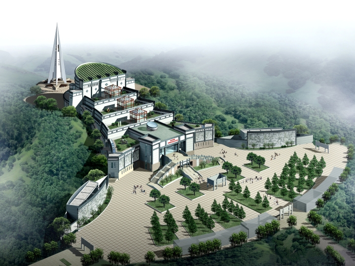 設計中充分尊重當地的氣候、基地的地形地貌等自然環境和條件,同時又參照當地的民居及軍部舊址的建筑特征,使建筑布局依山就勢,建筑基本上是 二層,以二層作一單元,以臺階的方式由前向后逐步爬山布局,體現出“輕輕觸碰地球”——少破壞山體的設計理念。設計也堅持自然采光和自然通風,沒有考慮空調設施,主要利用頂側光、天井等解決自然采光,利用陳列室兩側高低窗的布置和陳列室下的風道,創造自然通風的條件。二層臺階式陳列室均為平屋頂,上做綠地,遠視似當地的“梯田”一樣,使建筑的整體與自然環境融于一體。建筑外部以實體為主,反映了當地民居的特色和紀念館需要陳列墻面的個性的需要,建筑外部色彩以灰白色為主,立面造型及細部充分考慮了徽派建筑地域特色在該新建筑中的表現,同時傳達出濃郁的安徽徽派建筑的氣息。