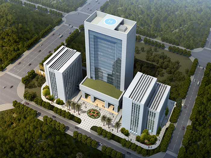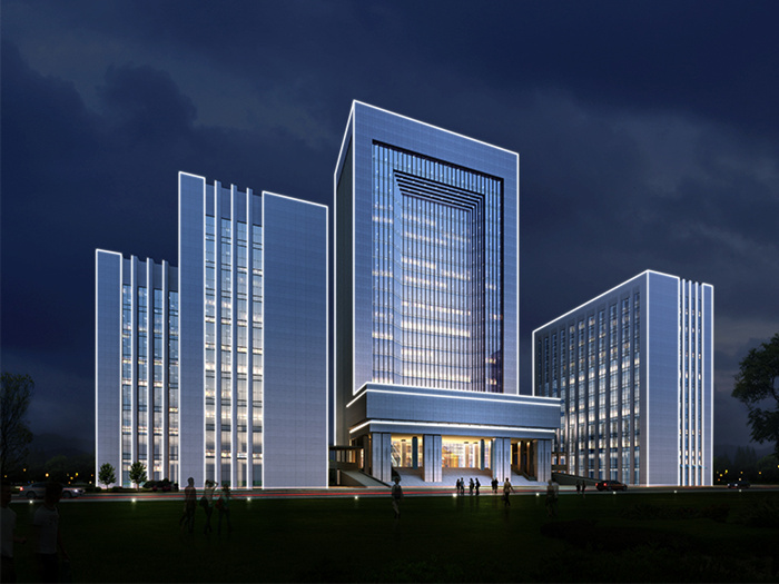 愷泰大廈項目位于惠州市仲愷高新區,整體規劃構思是以城市秩序為基調,以莊嚴穩重為形象,以分合有度為格局,以適用節能為追求,塑造新時代辦公大樓的新氣質,整體布局:大廈整體呈中軸對稱布置,對應毗鄰的三條城市道路,分為三部分,各自有獨立的入口形象面。東西兩側較低,與城市界面自然過渡,中間主體大樓較高,靠北側布置,避免了建筑對南側道路城市界面的壓迫,同時退讓出廣場空間,創造入口廣場縱深感,大廈整體圍合不合,坐北朝南,體量穩重,界面舒展。