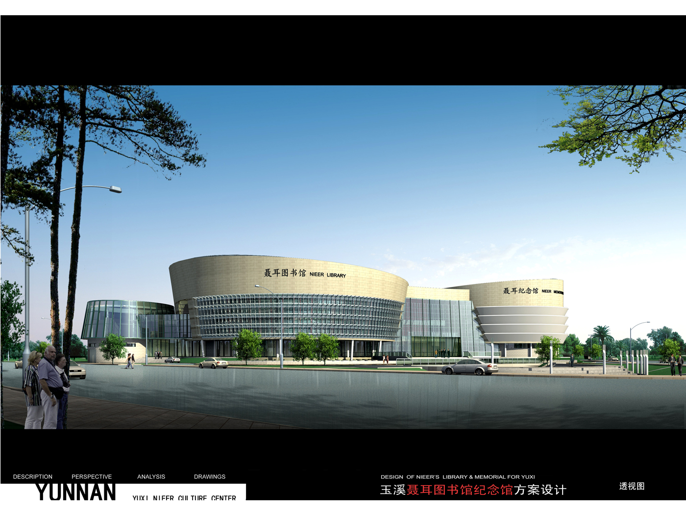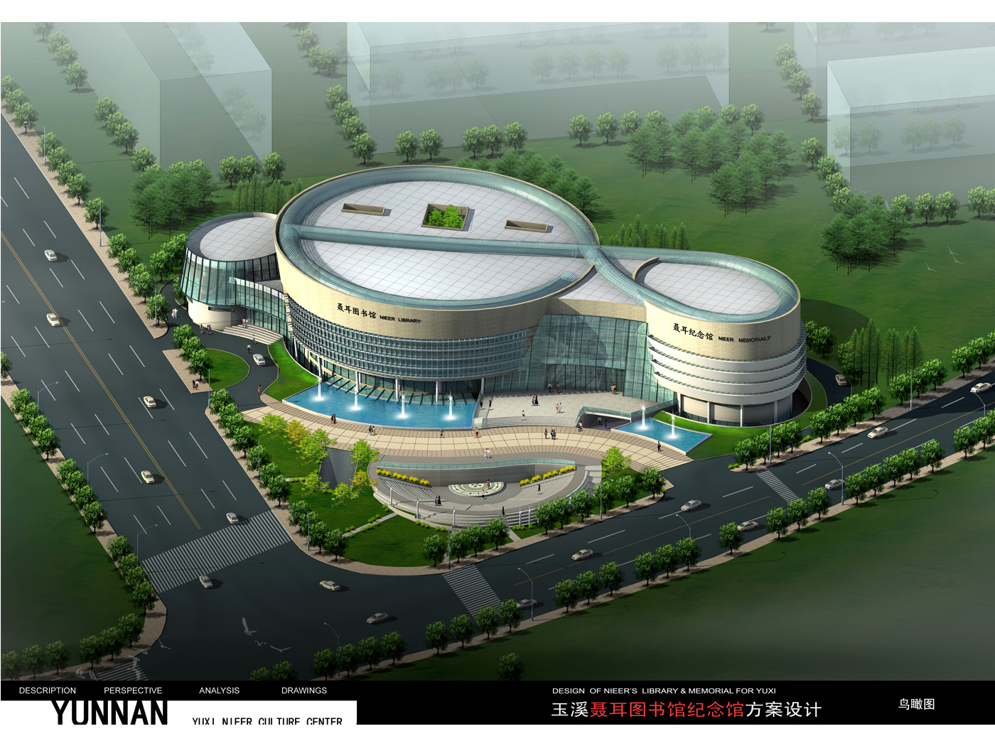 該工程包括兩項(xiàng)內(nèi)容,即聶耳圖書(shū)館、聶耳紀(jì)念館。建設(shè)基地位于玉溪九大項(xiàng)目之一的玉湖之畔,北臨環(huán)湖路,東臨棋陽(yáng)路,呈三角形,基地大小為20畝。 二館東臨全民健身中心,北面玉湖景區(qū)和聶耳文化廣場(chǎng),朝向、景觀均佳。