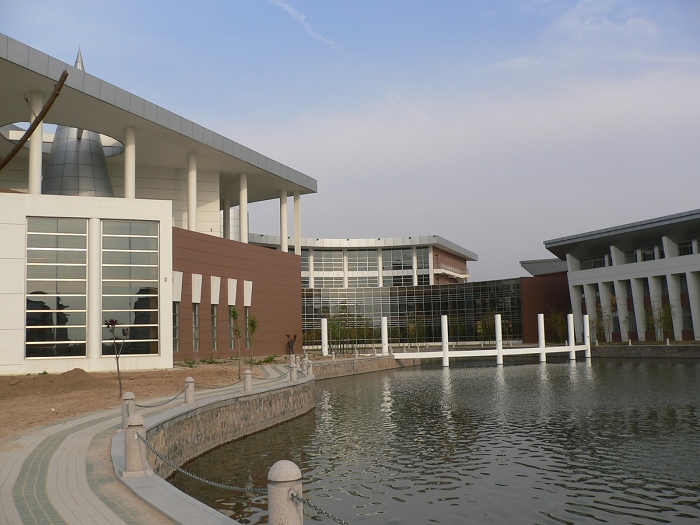 宿遷學院位于宿遷市區南部,東南西北分別由黃河南路、下相路、飲馬堤路、楊公路界為梯形塊狀,古楚路貫穿校園東西,把校園分為南北兩個校區。飲馬堤路西和下相路南分別由200m寬的綠化風光帶,與黃河、南外環相連。本次規劃設計為二期工程,配合一期校區既有功能,整體規劃包括教學樓、現代教育中心、學生公寓、食堂、圖書館、試驗場、實習工場、學生活動中心、風雨操場等重要單元建筑。