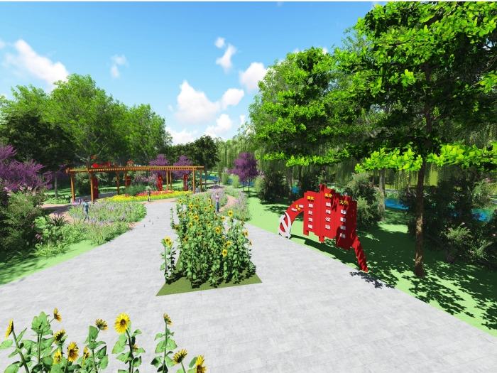 以美麗鄉村為基底、紅色文化為底蘊的鄉村改造項目。設計充分利用原有鄉村生活氣息濃郁的環境基底,挖掘及發展紅色文化,通過二元對比的方式,用“紅”(文化)與“綠”(生態)對比的手法打造一河兩岸、民居與周邊環境;并運用穿插的表現手法實現潮汕農村聚落的村莊環境特色與東尾獨有的紅色文化內涵融合。