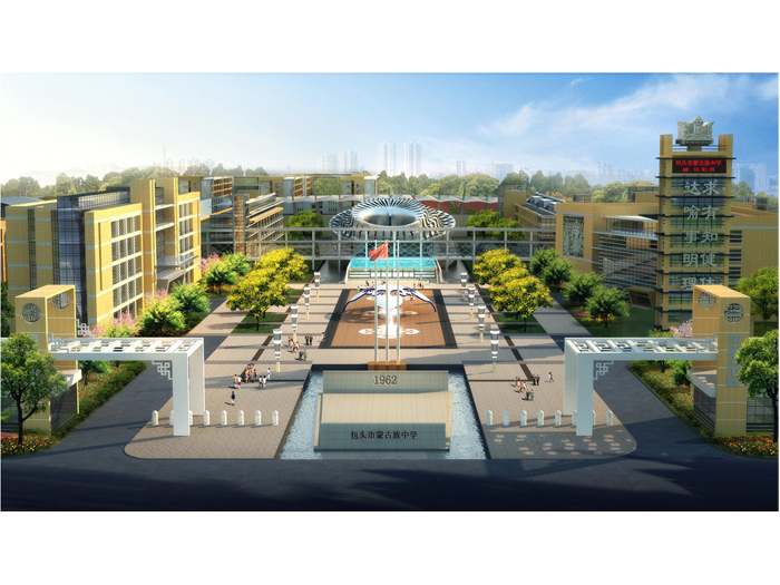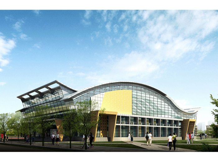 本方案設計主題為“禮樂相成”,即為教師主動的“教”和學生自覺的“學”提供良好的硬件和適宜的場所。禮的體現:教學空間主要包括各個教室,在空間安排上盡量完整與端正,在外部以軸線上的空間序列形成端莊、嚴肅的性格,突出一個“禮”字。空間安排上逐層提高,使人聯想到學習對人素質提高的作用。樂的體現:自學空間包括自習教室和閱覽空間,安排上圍而不合,形成相對自由的庭院,庭院中央設有學生活動廣場,借以激發學習的興趣,突出一個“樂”字。