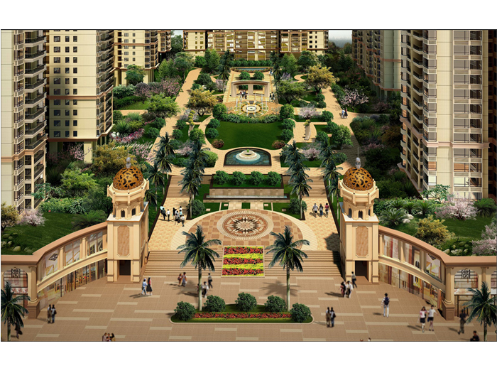 本設計充分利用嶺南地區氣候特點,將建筑單體沿東西向展開布置于場地的南、北兩邊,形成南北對流的單元平面。規劃設計單體均為東南和西南朝向,同時沿用地南北兩邊布置,形成充足樓距,使住宅戶內空間空氣流通。采光良好,大大減少住戶對人工采光及空調的依賴。同時利用“U”型單體布局形成圍而不合的內庭院空間,營造超大中心花園 ,除了起到美化小區的效果外,也對小區的溫度、干濕度等小氣候元素起到很好的調節作用。